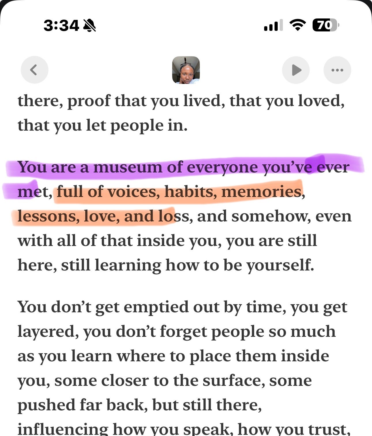 it took me a while to just accept it gracefully instead of questioning it because it didn’t make sense to me at the time. She was going out of her way, adding time to her own commute, just to make sure i got home in time. and she never once let me put gas in her car. Never made it feel like a favour i owed her.